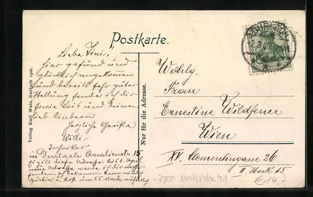 alte Ansichtskarte, gelaufen 1907, guter Zustand