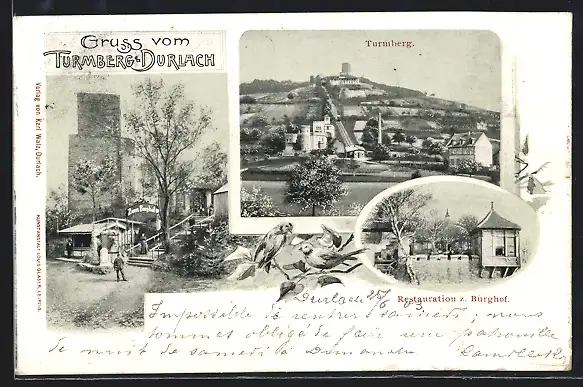 AK Durlach, Restaurant zum Burghof, Turmberg mit Burg