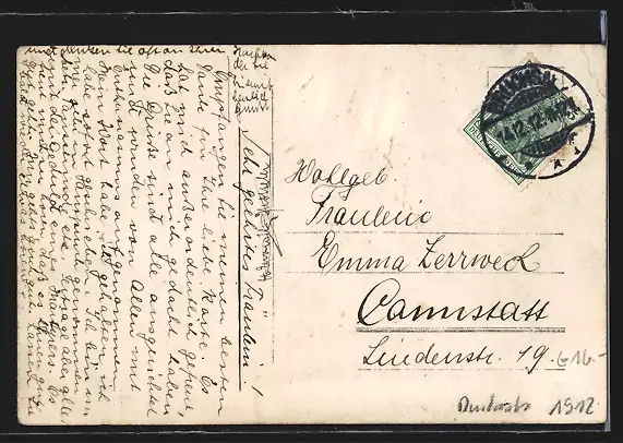 alte Ansichtskarte, gelaufen 1912, Eckknick li. oben, guter Zustand