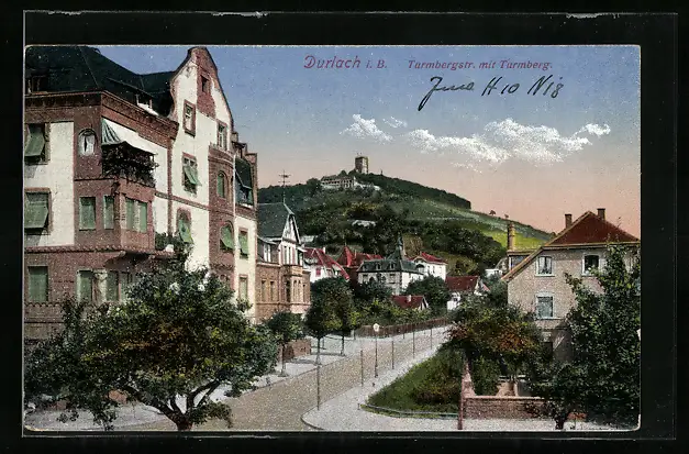 AK Durlach, Turmbergstrasse mit Turmberg