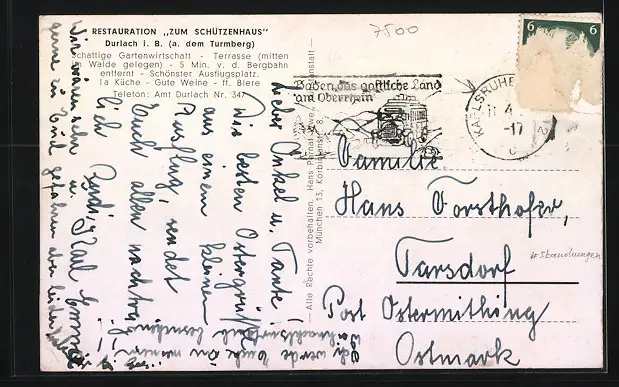 AK Durlach i. B., Restaurant zum Schützenhaus a. dem Turmberg