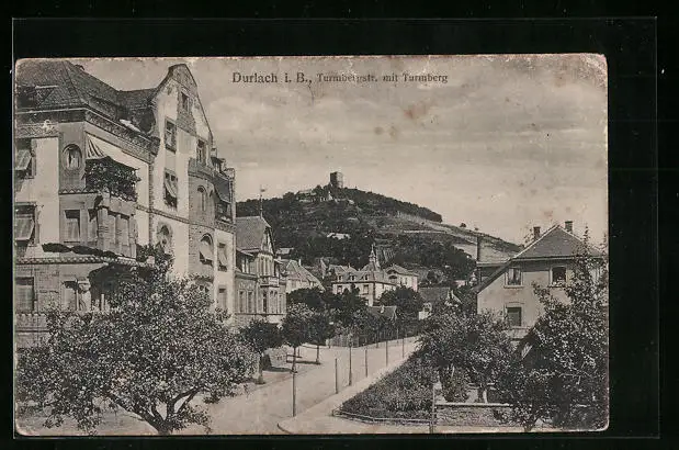 AK Durlach i. B., Turmbergstrasse mit Turmberg