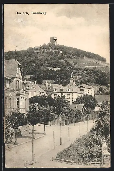 AK Durlach, in der Turmbergstrasse, Blick zum Turmberg