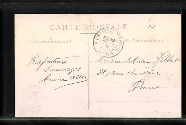 Personenbezogene Daten auf der Rückseite der Karte wurden durch blauen Textmarker unkenntlich gemacht. Die blauen Stellen sind auf die Vorderseite durchgeweicht und wirken sich negativ auf das Postkartenfoto aus
