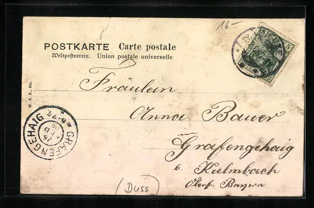 alte Ansichtskarte, gelaufen 1906, Eckknick unten li., guter Zustand