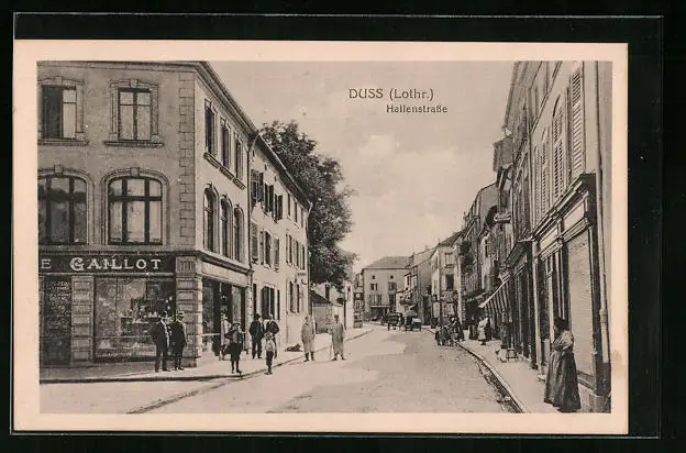 AK Duss /Lothr., Hallenstrasse mit Geschäft