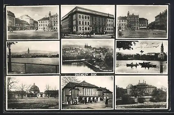 AK Dux, Ortsansicht, Marktplatz, Gewässer