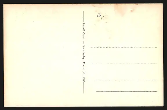 Personenbezogene Daten auf der Rückseite der Karte wurden durch blauen Textmarker unkenntlich gemacht. Die blauen Stellen sind auf die Vorderseite durchgeweicht und wirken sich negativ auf das Postkartenfoto aus