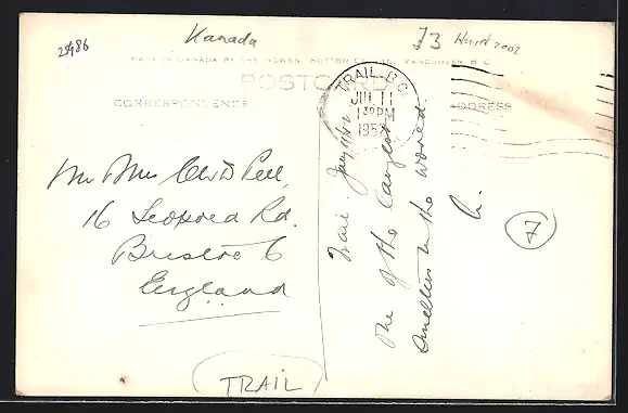 gelaufen 1952, Briefmarke entfernt, guter Zustand
