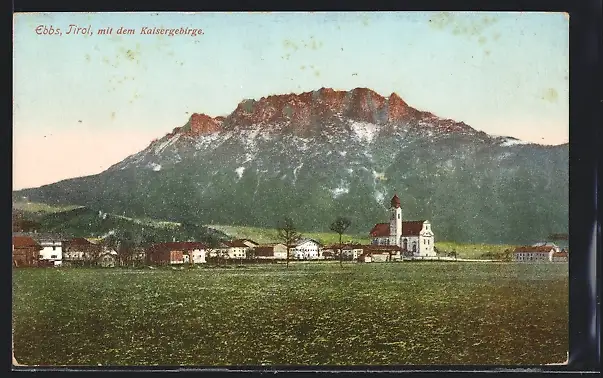 AK Ebbs, Ortsansicht mit dem Kaisergebirge
