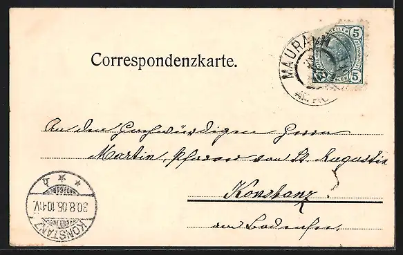 alte Ansichtskarte, gelaufen 1905, Briefmarke entfernt, guter Zustand