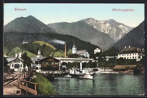 AK Ebensee, Dampfer liegt am Landungsplatz
