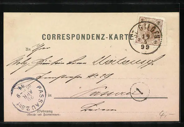 alte Ansichtskarte, gelaufen 1899, guter Zustand