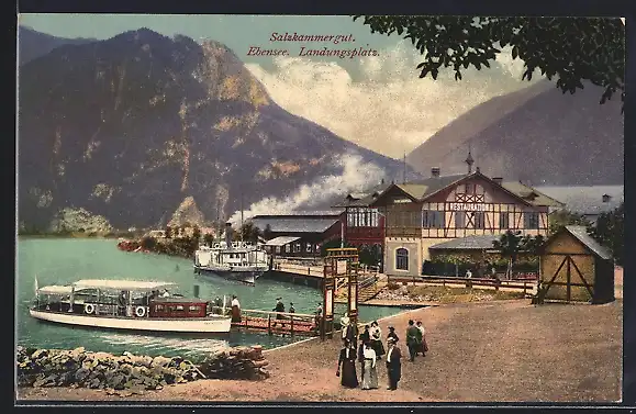 AK Ebensee, Landungsplatz mit Restaurant und Salzkammergut