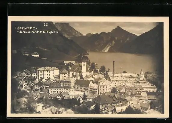 AK Ebensee, Ortsansicht aus der Vogelschau