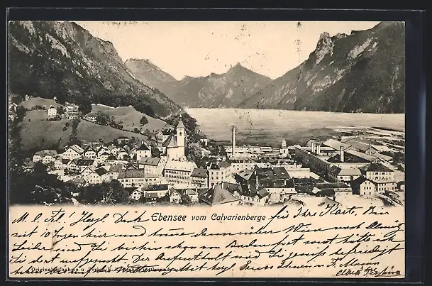 AK Ebensee, Ortsansicht vom Calvarienberg