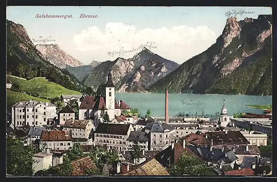 AK Ebensee, Salzkammergut, Teilansicht mit Kirche