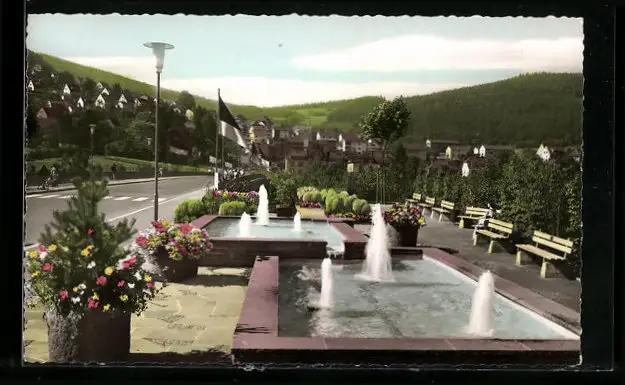 AK Eberbach a. Neckar, Wasserspiele a. d. Neckarbrücke