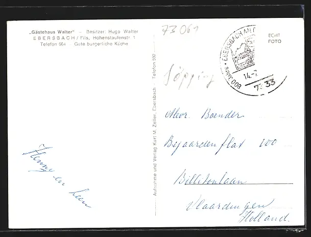 AK Ebersbach /Fils, Gästehaus Walter, Inh. Hugo Walter, Hohenstaufenstr. 1
