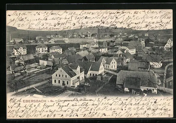 AK Ebersbach i. Sa., Ortsansicht aus der Vogelschau