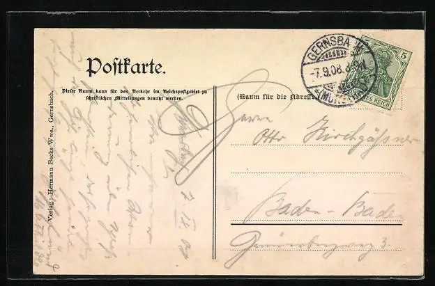 alte Ansichtskarte, gelaufen 1908, guter Zustand