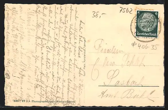 gelaufen 1936, rückseitig Klebe- und Papierreste, guter Zustand
