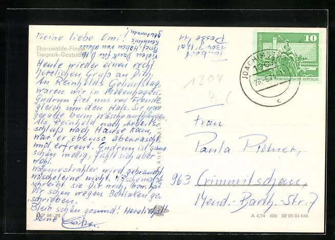 alte Ansichtskarte, gelaufen 1974, Briefmarke tw. entfernt, guter Zustand