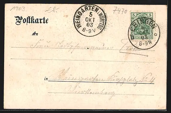 alte Ansichtskarte, gelaufen 1903, guter Zustand