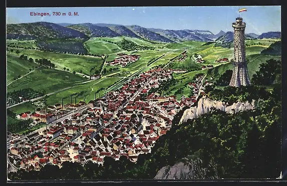 AK Ebingen, Gesamtansicht mit dem Aussichtsturm