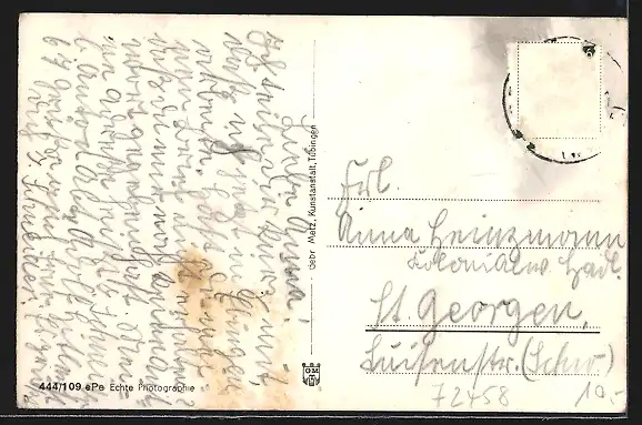 alte Ansichtskarte, gelaufen, Briefmarke entfernt, Bugspur re. unten, guter Zustand
