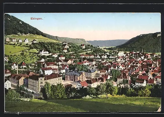 AK Ebingen, Ortsansicht bei Sonnenschein