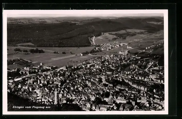 AK Ebingen, Ortsansicht vom Flugzeug aus