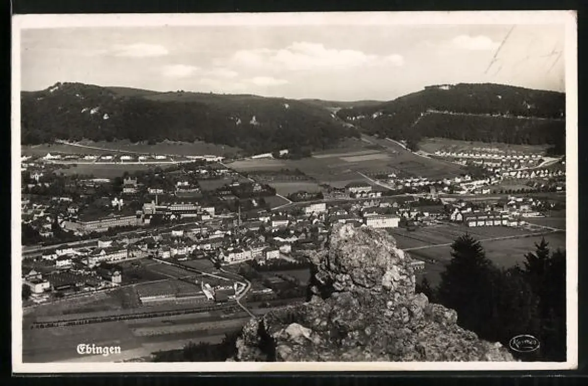 AK Ebingen, Panoramaansicht des Ortes und Umgebung