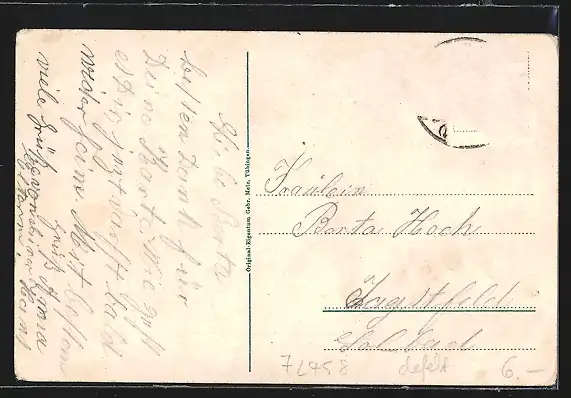 alte Ansichtskarte, gelaufen, Briefmarke entfernt, rückseitig Oberflächenschaden, guter Zustand