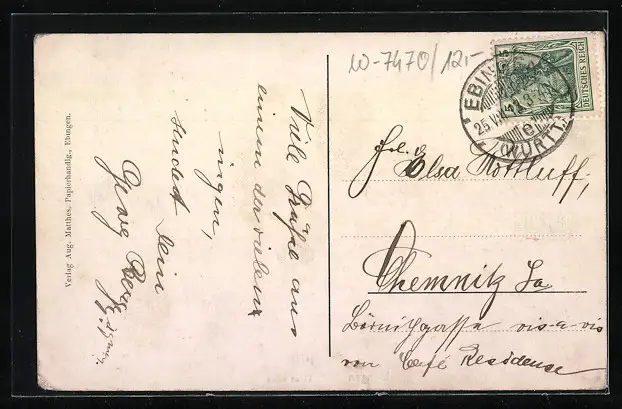 alte Ansichtskarte, gelaufen 1913, Eckknicke unten, guter Zustand