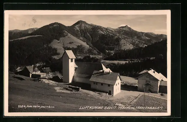 AK Ebnit, Ortsansicht aus der Vogelschau bei Sonnenschein