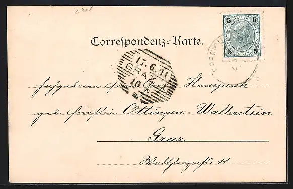 alte Ansichtskarte, gelaufen 1901, Stempelspur, guter Zustand