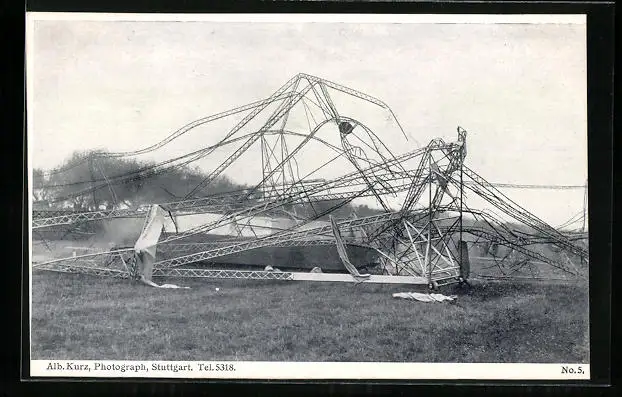 AK Echterdingen, zerstörtes Zeppelin-Luftschiff, Gondel nach der Sturm-Katastrophe am 05.August 1908