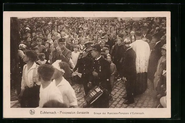 AK Echternach, Procession dansante, Groupe des Musiciens-Pompiers