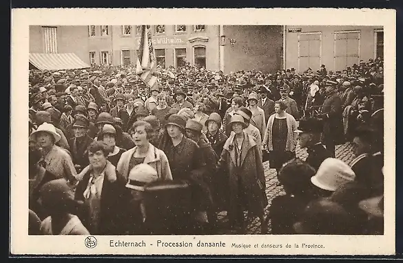 AK Echternach, Procession dansante, Musique et danseurs de la Province