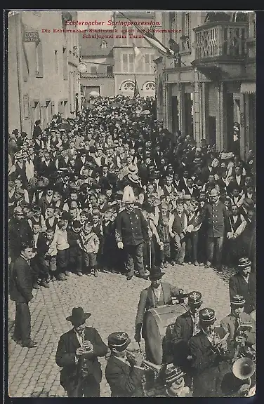 AK Echternach, Springprozession, Stadtmusik spielt der Schuljugend zum Tanze