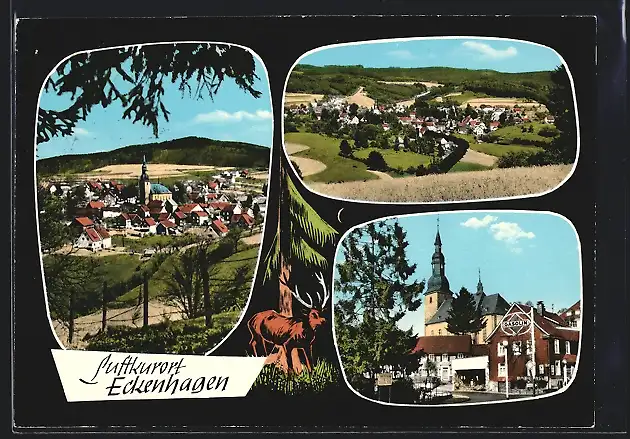 AK Eckenhagen, Ortsansicht und Strassenpartie