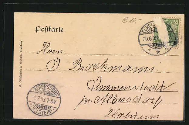 alte Ansichtskarte, gelaufen 1903, guter Zustand