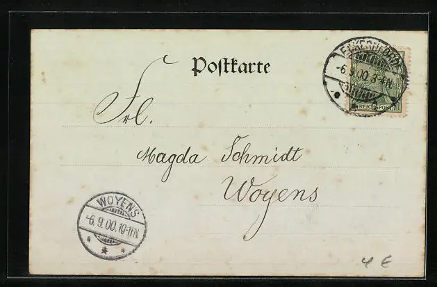 alte Ansichtskarte, gelaufen 1900, guter Zustand