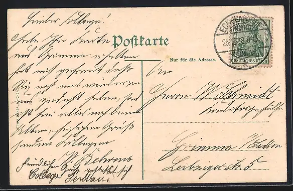 alte Ansichtskarte, gelaufen 1908, Stempelspur, guter Zustand