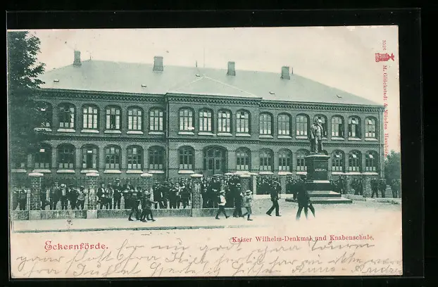 AK Eckernförde, das Kaiser Wilhelm-Denkmal mit Knabenschule