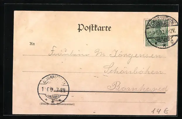alte Ansichtskarte, gelaufen 1900, Eckknick links unten, guter Zustand
