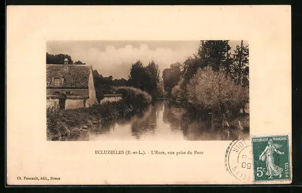 AK Ecluzelles, L`Eure, Vue prise du Pont