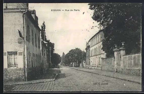 AK Écouen, Rue de Paris avec maisons et arbres alignés