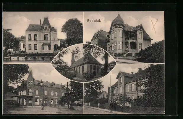 AK Eddelak, Strassenpartie, Strassenpartien mit Villen, Kirche